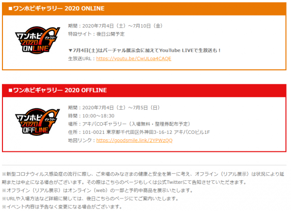 ワンホビギャラリー 2020 ONLINE&OFFLINE 開催決定!