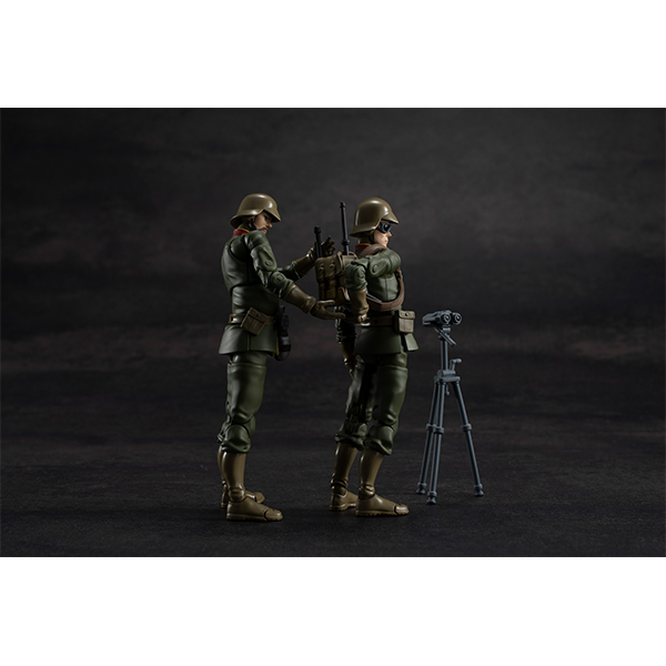 機動戦士ガンダムから“兵隊”に焦点をあてた可動フィギュアシリーズ「ガンダムミリタリージェネレーション(G.M.G.)」が新たに登場! 彩色済み完成品のフィギュアは全高約10cm(約1/18スケール)。全身可動により様々なポージングに対応することができます。一般兵士01には、オプションパーツとして制式スナイパーライフルや野営をイメージさせるカモフラージュネット等が附属。ミリタリー視点で兵士の日常から戦闘シーンまで幅広いシチュエーションを創り上げることができます。豊富なオプションパーツは他の兵士(別売り)の物も利用できるので、集めるほどにオリジナル感あふれる兵士を再現できます。さらに!各商品にはボーナスパーツが同梱されおり、3種購入すると大型機関砲が完成します。星の数ほどあるガンダムフィギュアの中で、名のある兵士ではなく“名も無き兵士”をクローズアップした本格アクションフィギュア「G.M.G.」です。