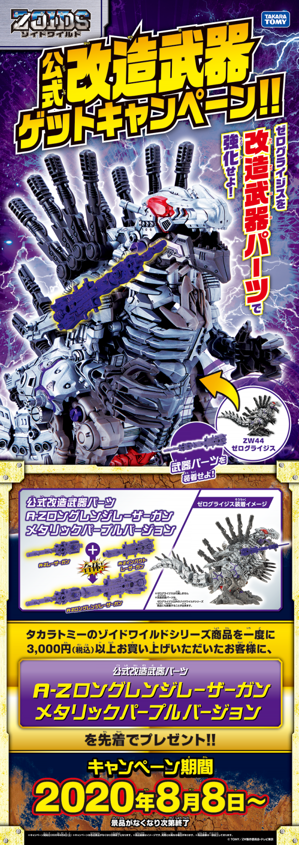 【ゾイドワイルド】公式改造武器ゲットキャンペーン「A-Zロングレンジレーザーガン メタリックパープルバージョン」が貰える!