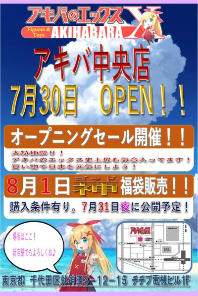 【ホビーショップ】「アキバのエックス 中央店」8月1日(土曜)に福袋販売【動画・販売方法追加】