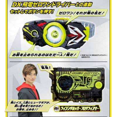 「ライジングホッパープログライズキー ゼロワンリアライズver.」は、「変身ベルト DX飛電ゼロワンドライバー」(別売り)にセットすると、仮面ライダーゼロワン リアライジングホッパーへの変身音が発動します。