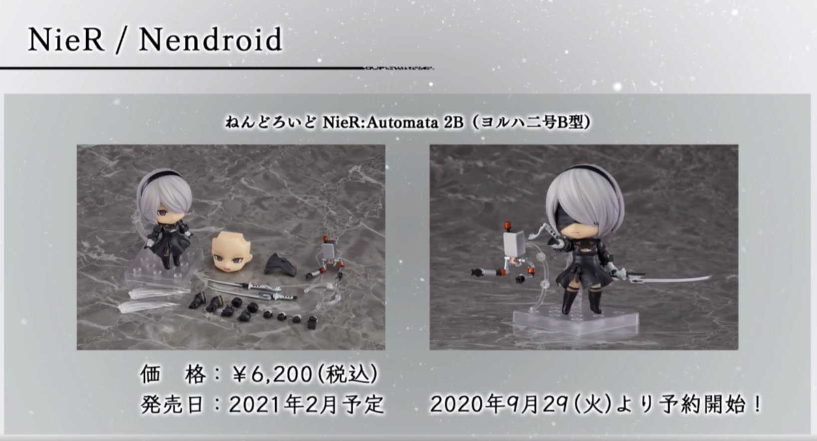 グッドスマイルカンパニーさん制作のニーアオートマタねんどろいど2Bが登場です。予約開始は9月29日(火)予定!