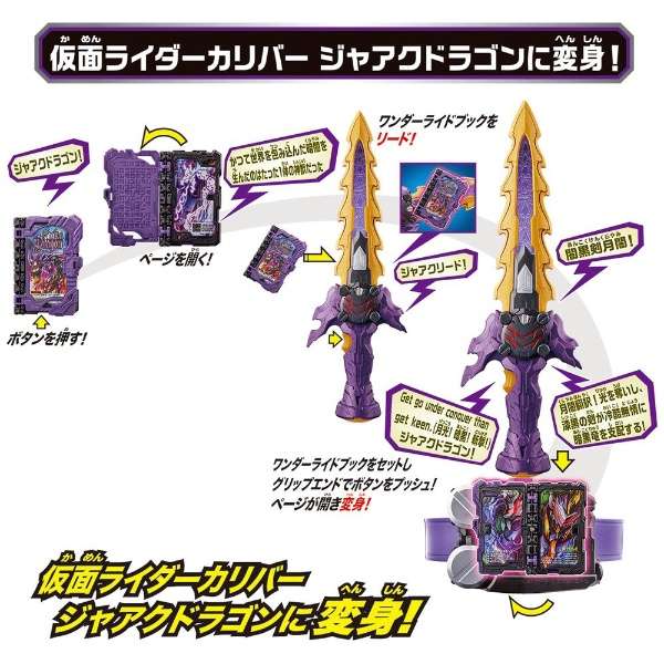 仮面ライダーセイバーより、『変身ベルト DX闇黒剣月闇&邪剣カリバードライバー』が登場。10月登場仮面ライダーの変身ベルト。ワンダーライドブックを剣でリードしてバックルにセット。剣のグリップエンドでバックルのボタンを押すとワンダーライドブックが開いて変身音が発動。ワンダーライドブック付属。(使用電池)単4 x 3 (別)、LR44 x 2 (付)