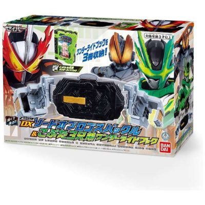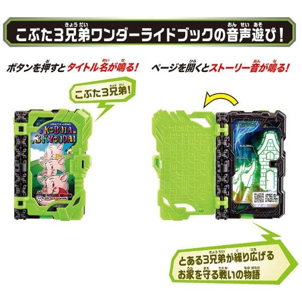 仮面ライダーセイバーより、『DXソードオブロゴスバックル&こぶた3兄弟ワンダーライドブック』が登場。複数ライダーが使用する共通のベルトとホルダーがセットになった商品。ワンダーライドブック付属。(使用電池)LR44 x 2 (付属)