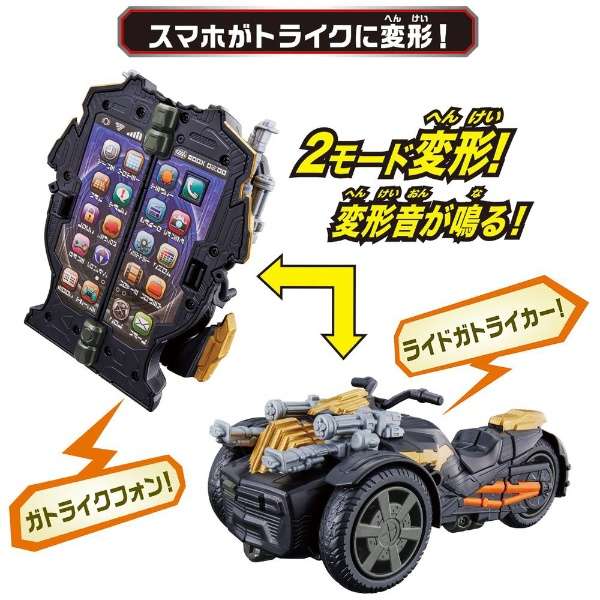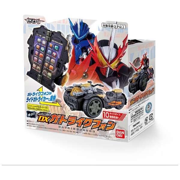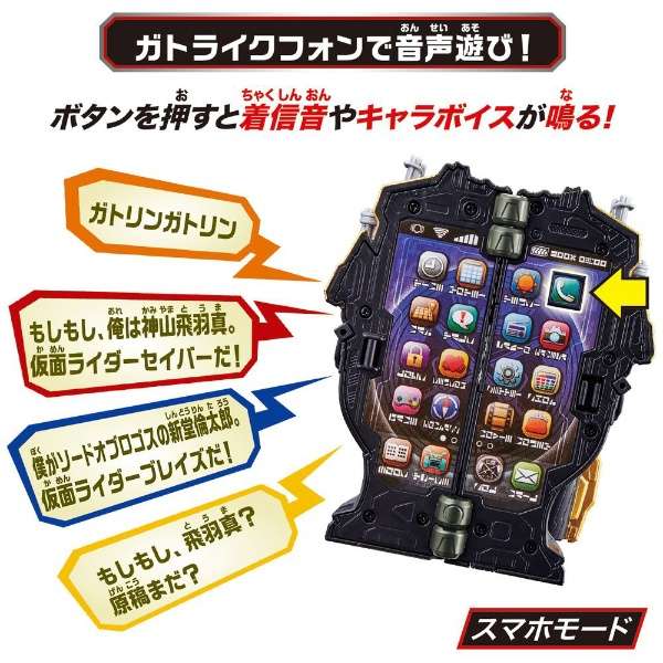 仮面ライダーセイバーより、『トライク変形 DXガトライクフォン』が登場。スマートフォンがトライクに変形!スマホモード、トライクモード各々の音声が発動!トライクモード時は、別売りのRKFシリーズと連動可能。(使用電池)LR44 x 2 (付属)