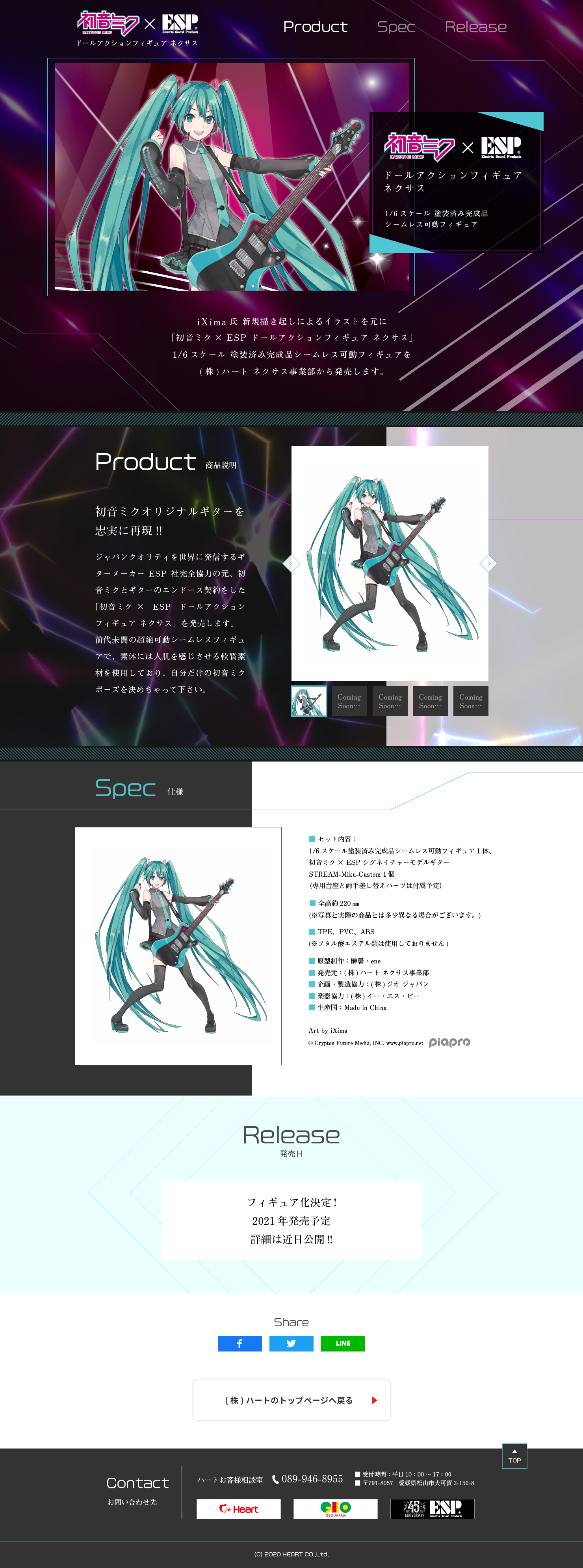 iXima氏 新規描き起こしによるイラストを元に「初音ミク × ESP ドールアクションフィギュア ネクサス」1/6スケール完成品シームレス可動フィギュアを株式会社 ハート ネクサス事業部から発売します。