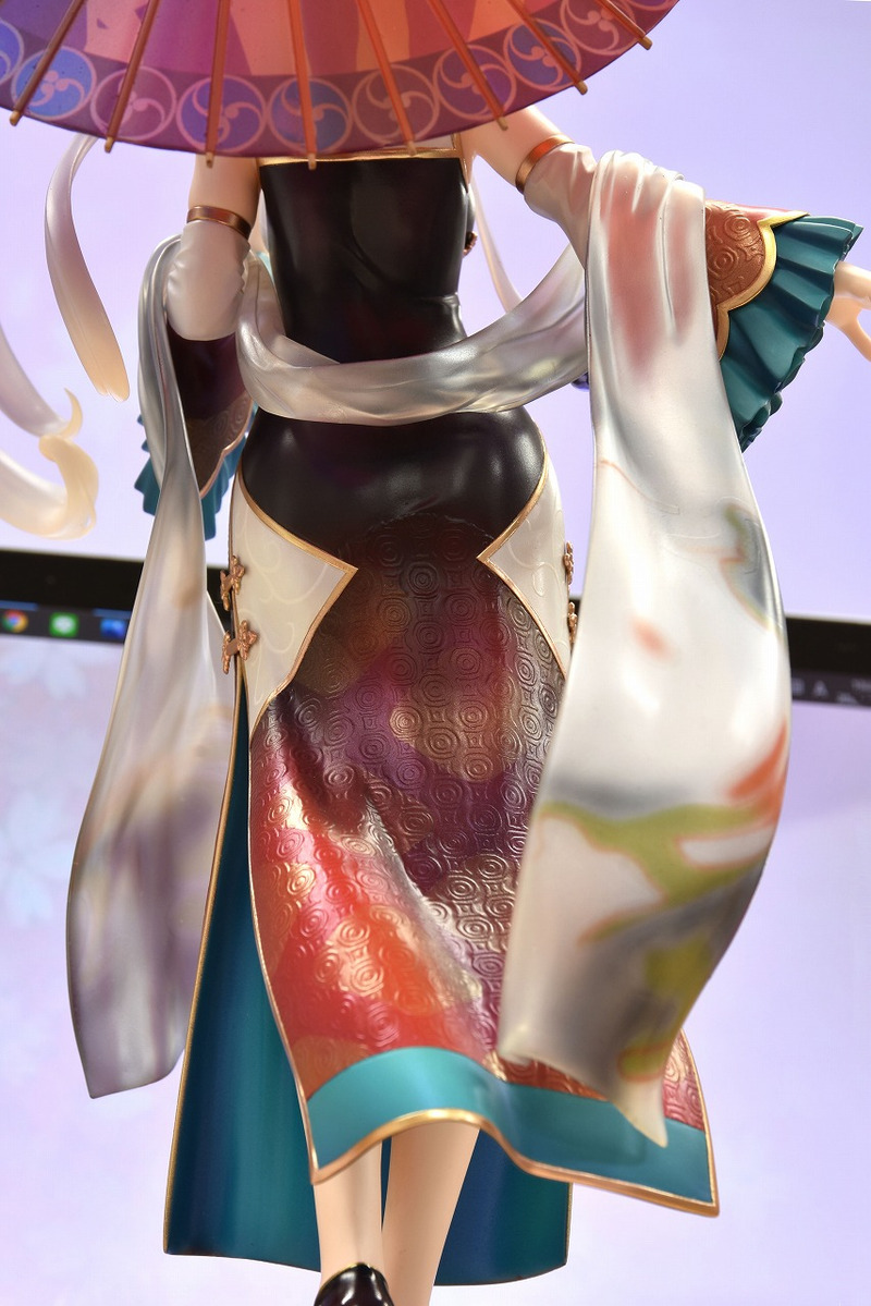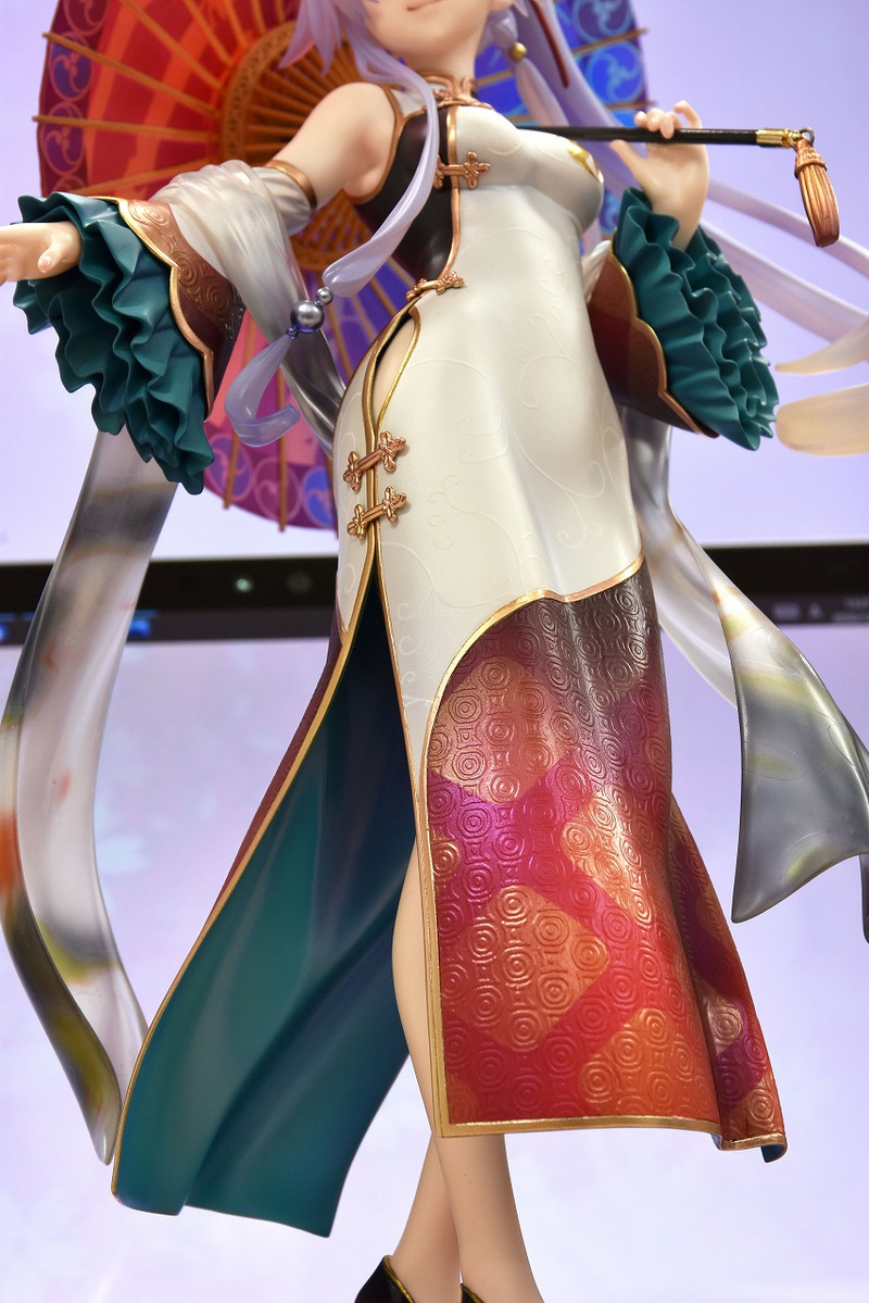 大人気スマホゲーム『Fate/Grand Order』より、アーチャークラスのサーヴァント「巴御前」が、三周年記念概念礼装「英霊旅装」イラストをモチーフにしたスケールフィギュアで登場です。華やかなチャイナ服はパール塗装やツヤ感の調整で質感を表現。軽やかに舞うショールや髪は、クリアパーツを使用いたしました。スリットからチラリと覗く脚や、指先の表情など、魅力あふれるフィギュアとなりました。旅を楽しむ巴御前の姿を是非、マスターのみなさまのお手元におむかえください。