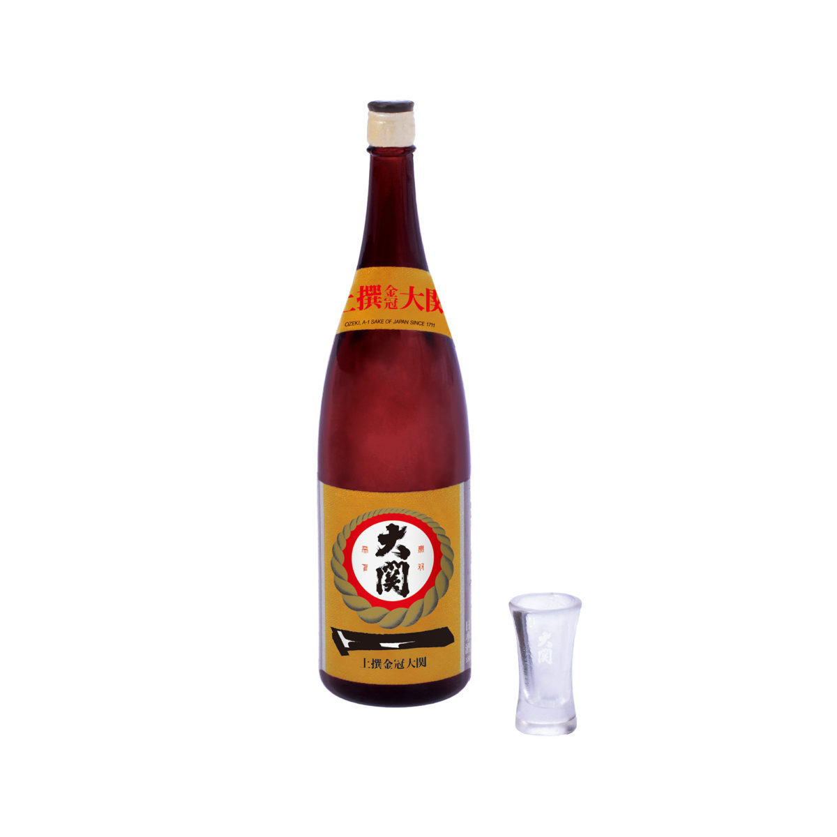 ラベルにデザインされている大関の企業ロゴ・通称「綱マーク」はもちろん、ラベルに印字された細かい文字のプリントにも注目です。瓶やグラスの透明度にもこだわって開発しました。キャップ部分には「大関」のロゴを再現。