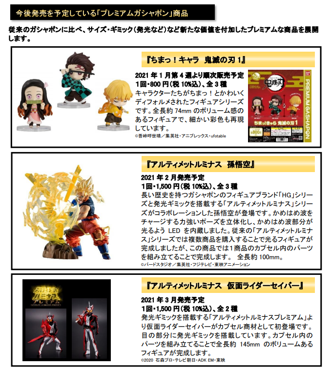 「プレミアムガシャポン」2021 年 1 月第 4 週より順次販売開始!