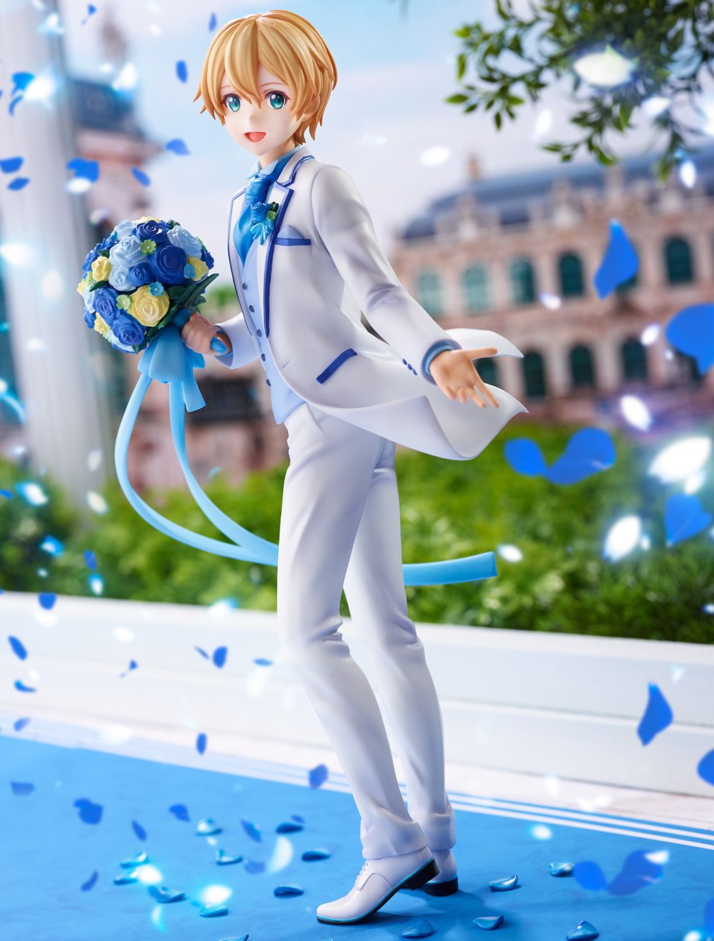白いスーツに身を纏い、青い薔薇を持った彼があなたをエスコートします。