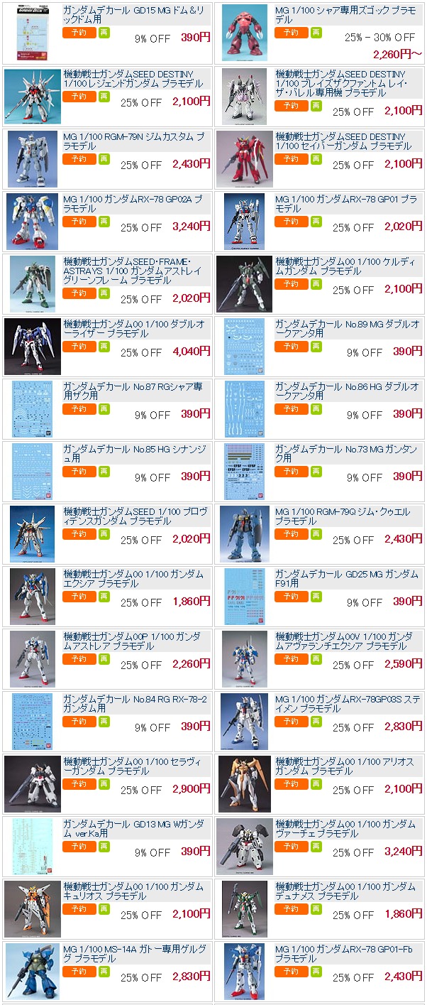 あみあみガンプラ一覧