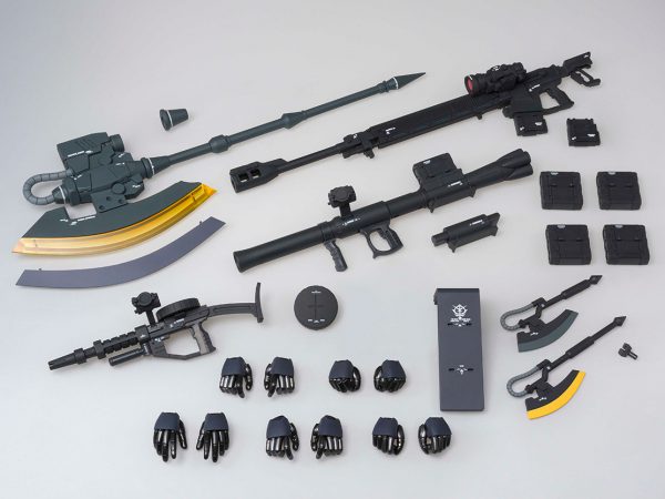 G.F.F.M.C. 『機動戦士ガンダムTHE ORIGIN』シリーズより、「黒い三連星」の異名で知られるガイア、マッシュ、オルテガの駆る高機動型ザクⅡが登場。高い機動力の要となるバックパック、脚部スラスターの造形に加えて、迫力のサイズのジャイアント・ヒート・ホークや対艦ライフルの武器が付属。付属のデカールにより、ガイア、マッシュ、オルテガの機体をそれぞれ再現することが可能です。