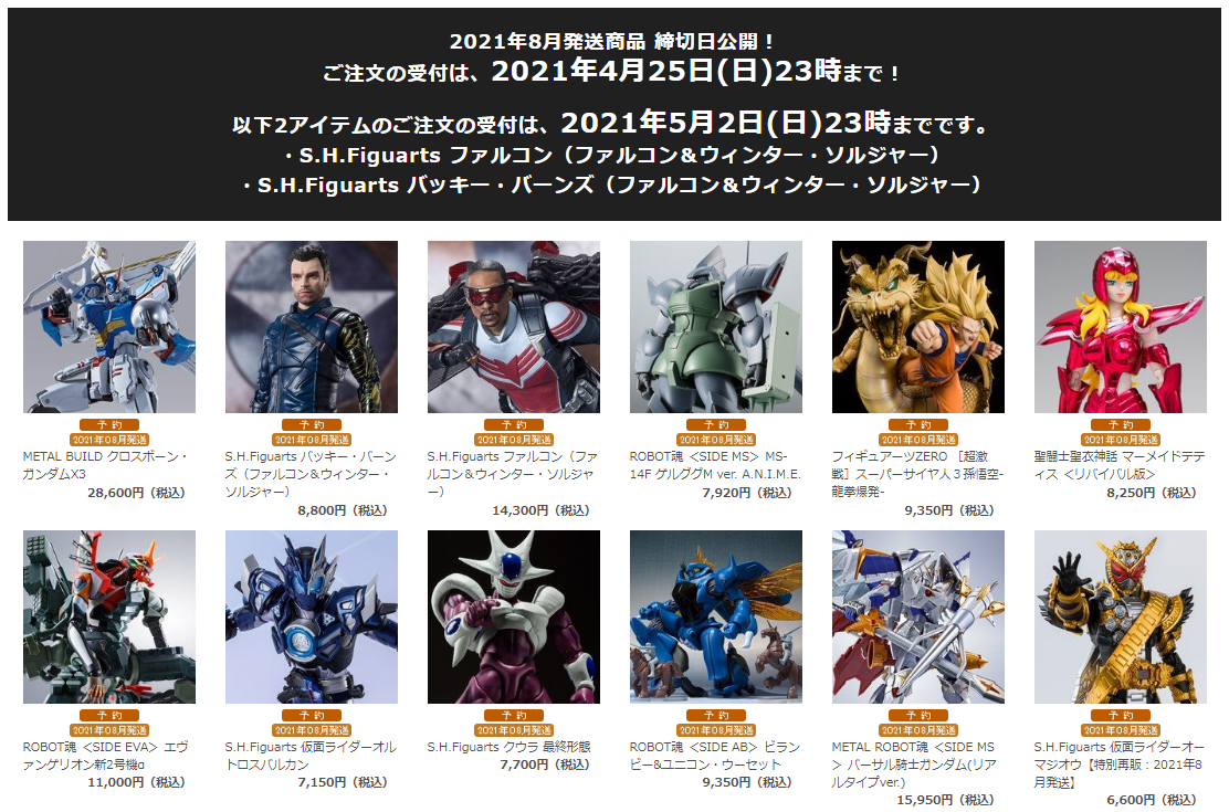 2021年8月発送商品 締切日公開!