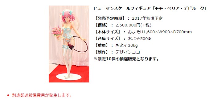 【ToLOVEる】「モモ・ベリア・デビルーク 等身大フィギュア」250万円、本日注文締切
