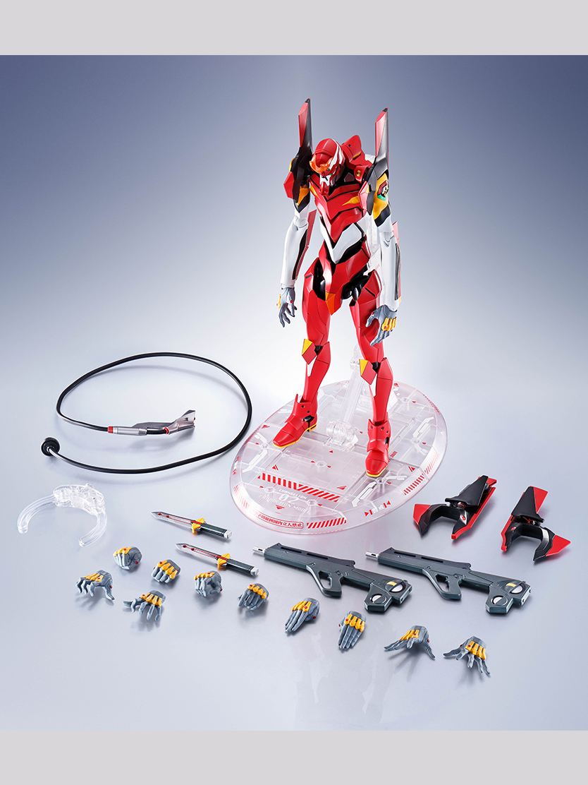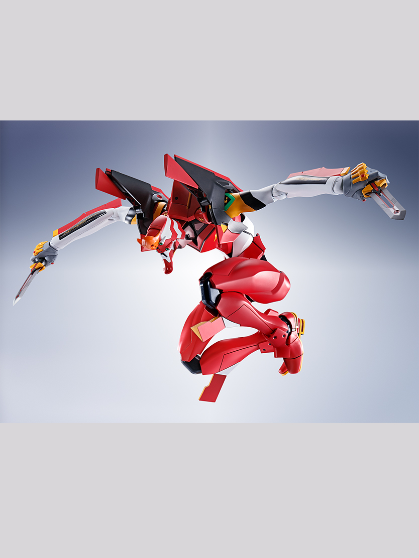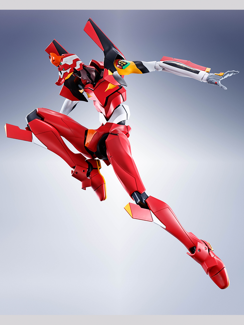 DYNACTIONにてエヴァンゲリオン2号機が登場。ダイキャストとポリアセタールを使用した複合関節により、全高約400mmの巨体ながら驚異的な可動性能を実現。差し替えパーツで肩口からプログレッシブナイフの展開、装備シークエンスを再現可能。