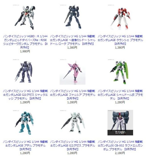 【ガンプラ】HG「ガンダムAGE」系ほか 8月再販分【楽天予約開始】