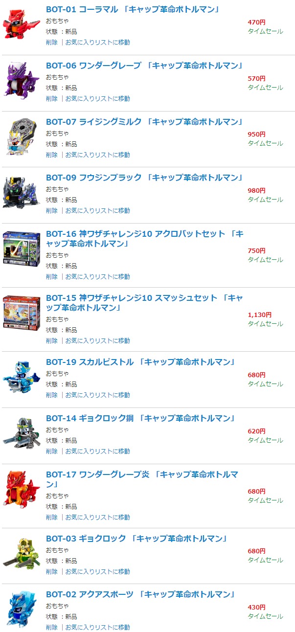 TOP > ロボット > 【キャップ革命ボトルマン】「コーラマル」「アクアスポーツ」ほか 駿河屋でタイムセール中