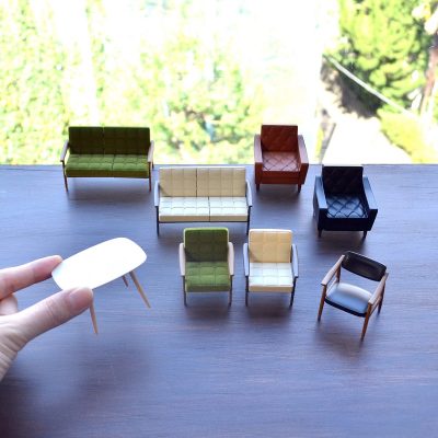 第1弾・第2弾と組み合わせて飾ることで、カリモク60のミニチュアワールドがさらに広がります。