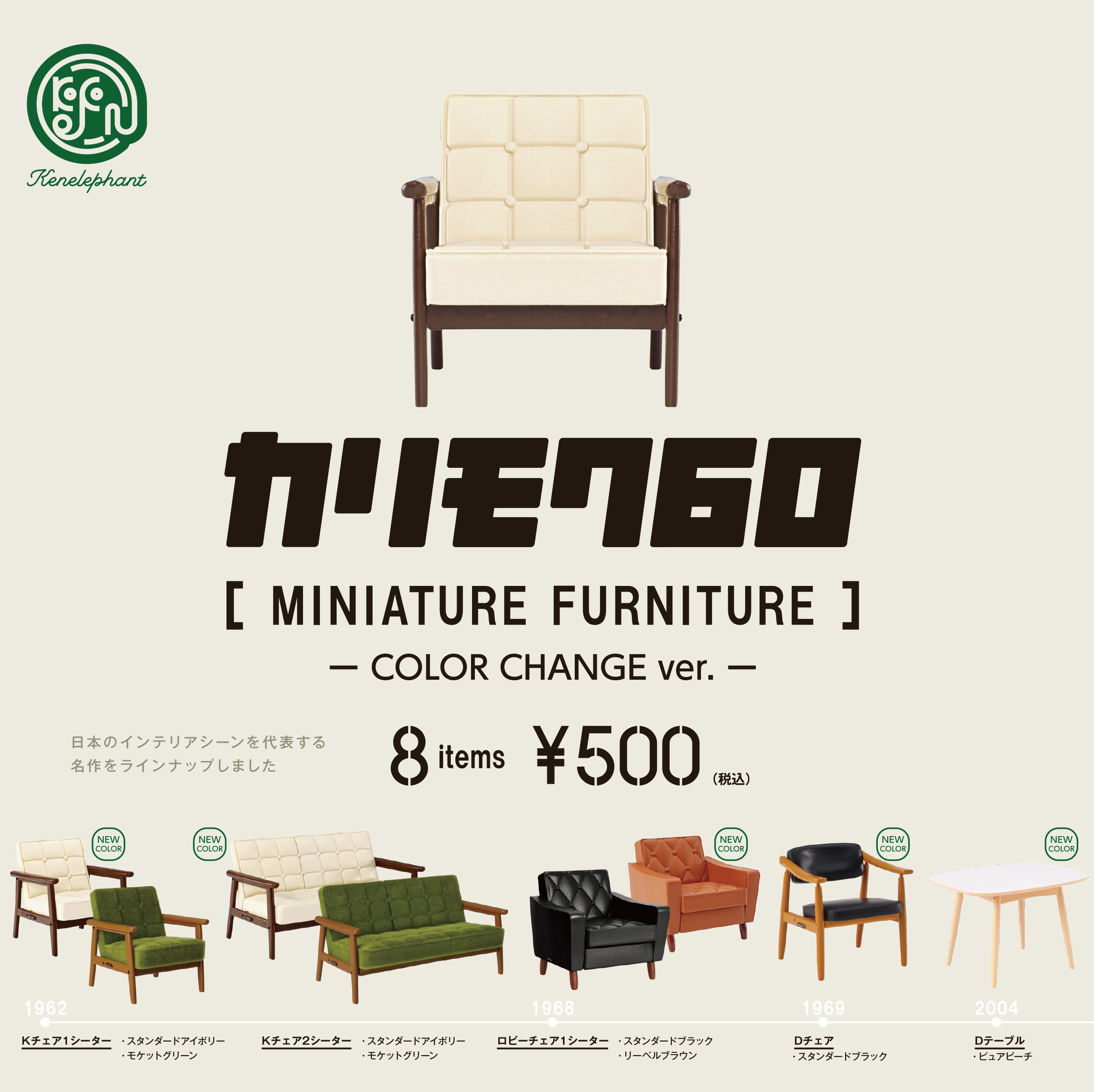 本商品は、2019年に発売した「カリモク60 ミニチュアファニチャー 第1弾」をベースに、新色を加えて再登場させたアイテムです。