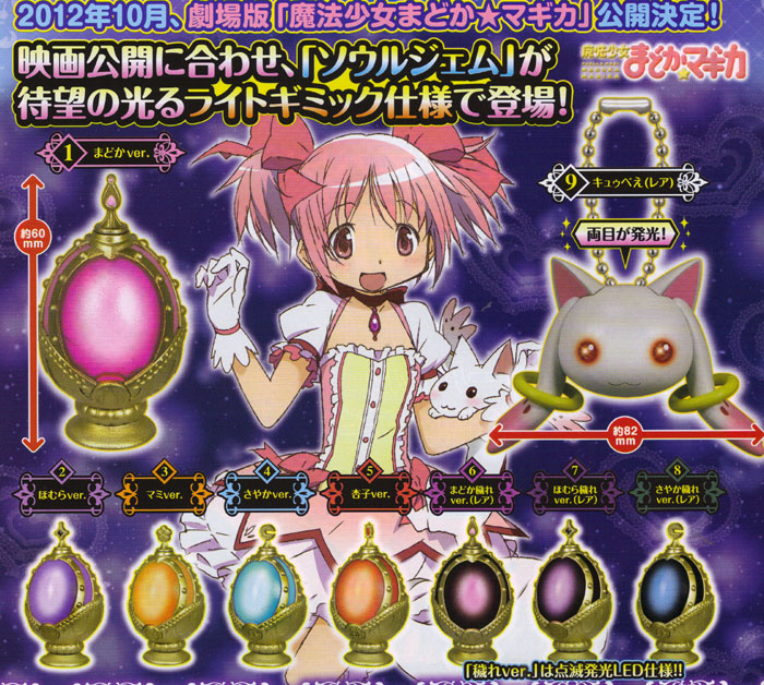 |CM()![]() | 463:ぼくらはトイ名無しキッズ:2012/06/29(金) 01:24:39.87 ガチャ 魔法少女まどか☆マギカ ソウルジェムライト 10月 |