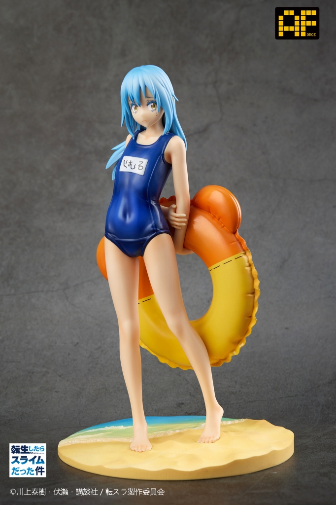 TVアニメ『転生したらスライムだった件』より、魔国連邦の長、リムル=テンペストが可愛いスク水姿で登場!仲間たちの妄想にしか登場しなかった幻の姿を、1/7スケールフィギュアの形でまさかの立体化!海辺を模したジオラマ台座はアニメの世界観を再現し、顔の汗は水転写式のデカールで自由にアレンジ可能。眉間に皺を寄せ、いかにも不機嫌そうな顔をしていても可愛さが溢れ出る、そんなリムルの魅力を是非お手元でご堪能あれ!
