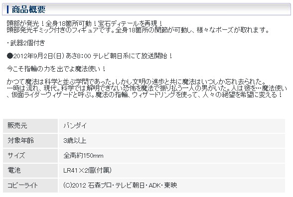 【仮面ライダーウィザード】「ウィザードアクションプリーズ!」シリーズ登場 頭部が発光!全身18箇所可動!宝石ディテールを再現!