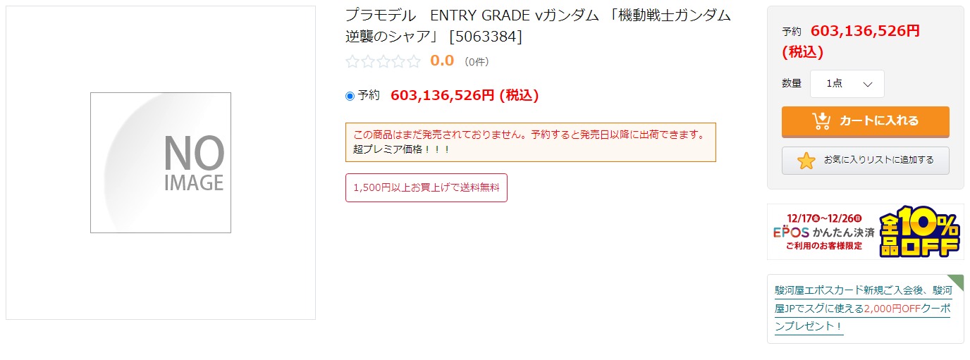 TOP > ロボット > ガンダム > 【ガンプラ】EG「νガンダム」駿河屋で予約開始(※プレミア価格のため6億円超え)