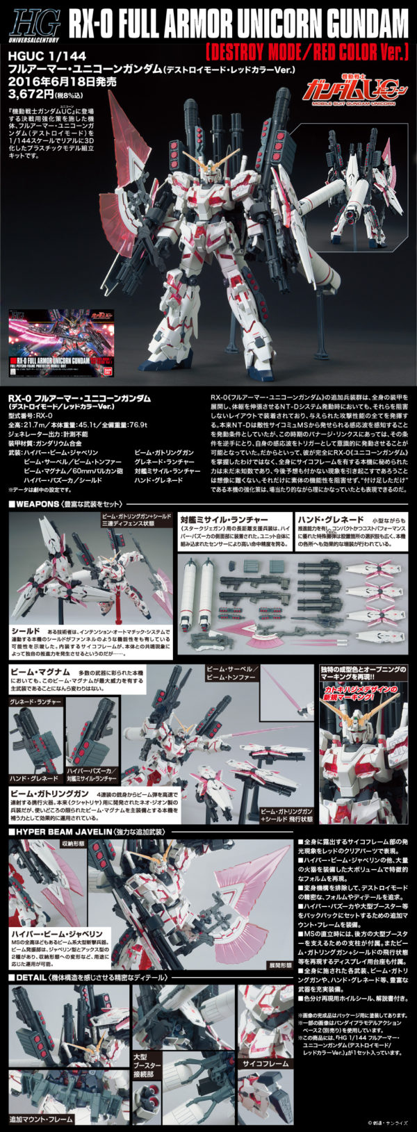 HGUC 機動戦士ガンダムUC 1/144 フルアーマー・ユニコーンガンダム(デストロイモード/レッドカラーVer.)