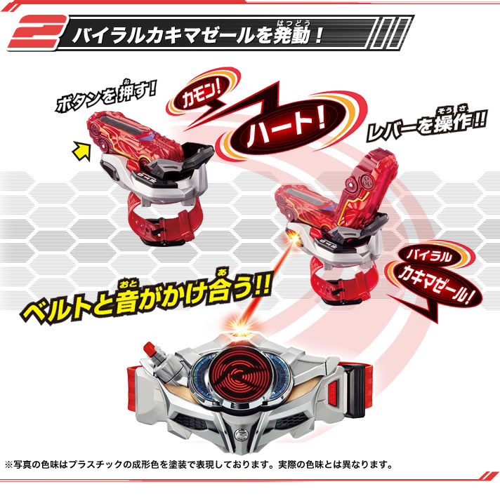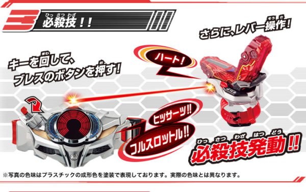 仮面ライダーハートに変身! 単体ではボタンを押して発光し、音声が発動!