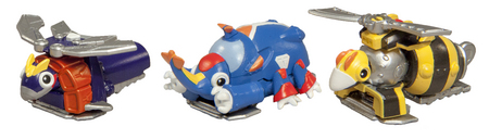 合体完了時にはロボットの目が光り、作中同様、各モチーフに合ったコミカルなサウンドが流れます。