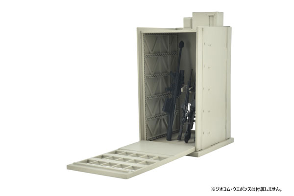 付属品のガンラックを建物内側に装着し、ジオコム・ウエポンズシリーズ(別売り) を格納可能!