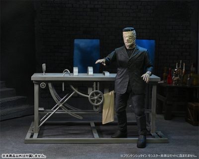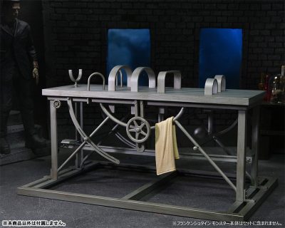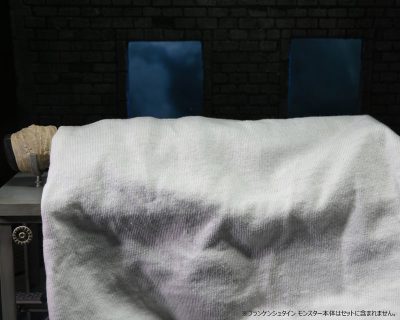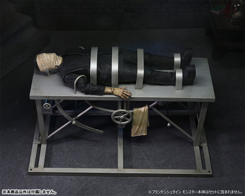さらに各所を拘束する実験台だけでなく掛けられた布、そしてフランケンシュタインモンスター(別売)に取り付け可能な包帯グルグル巻きの頭部パーツも付属した、ファン歓喜な仕様に。