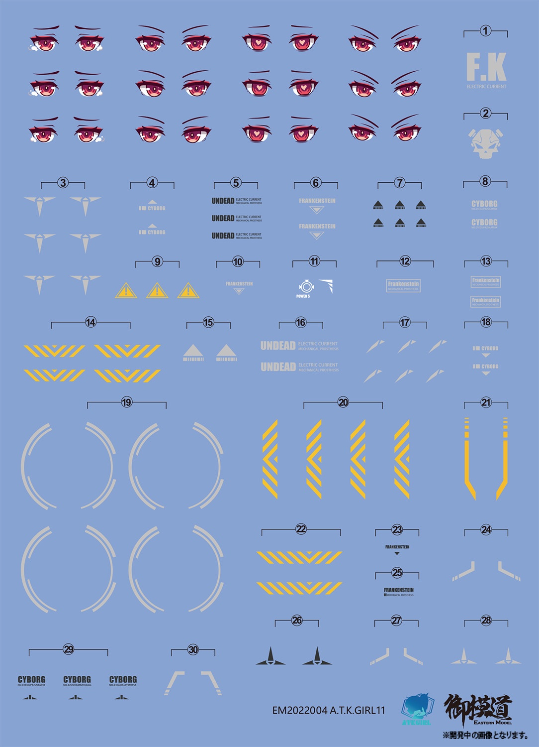 ■顔の表情を自分で仕上げるためのデカール類もセット