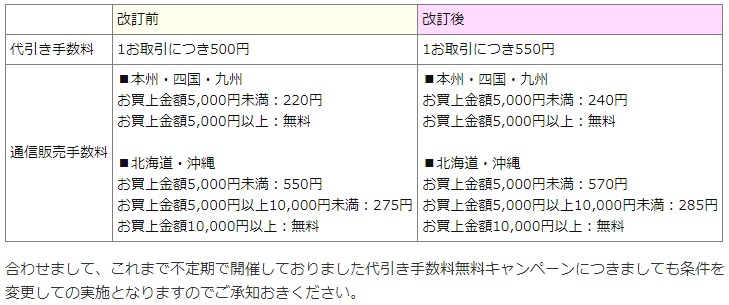 代引き手数料・通信販売手数料値上げのお詫びとお知らせ