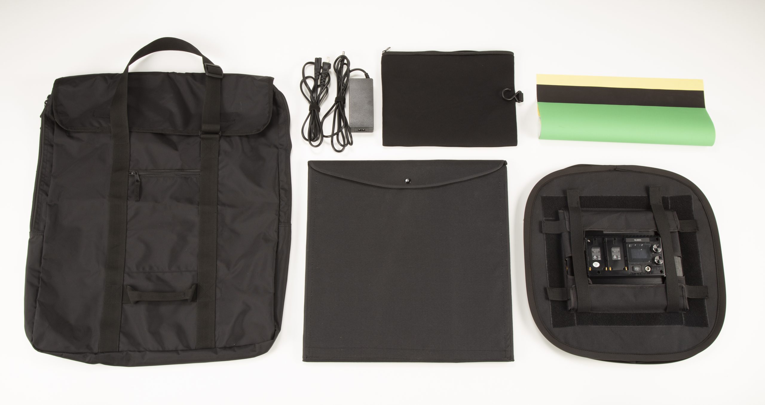 電源コード、背景シート3枚、専用バッグ