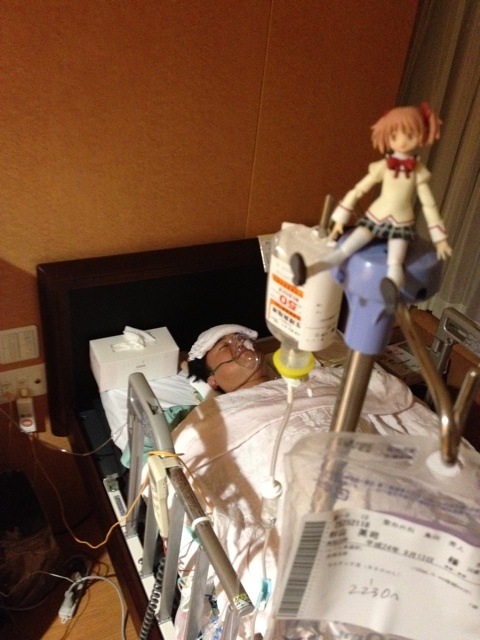 スギちゃんの病室にまどか☆マギカのフィギュア