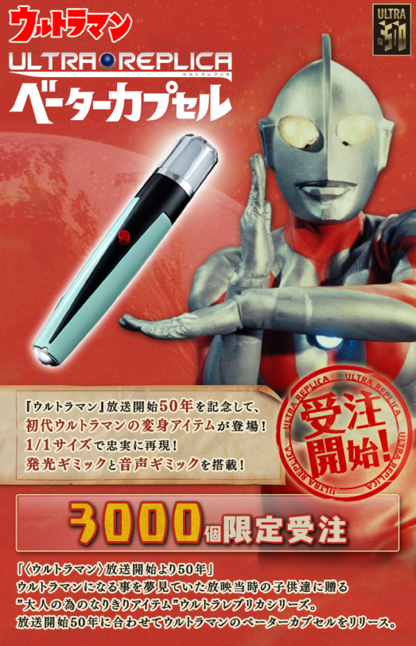 『ウルトラマン』放送開始50年を記念して、 初代ウルトラマンの変身アイテム「ベーターカプセル」が登場!