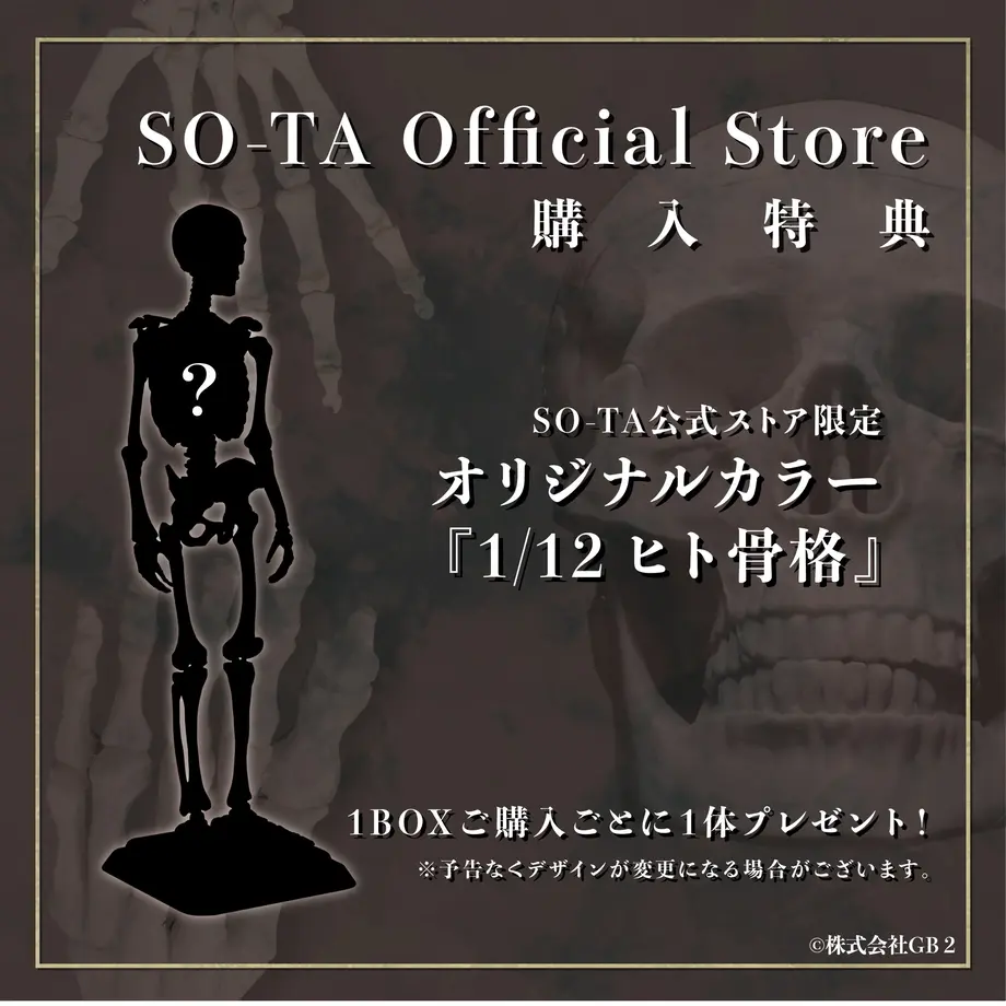 1/12スケール「ヒト骨格」再販決定、ショップ特典あり