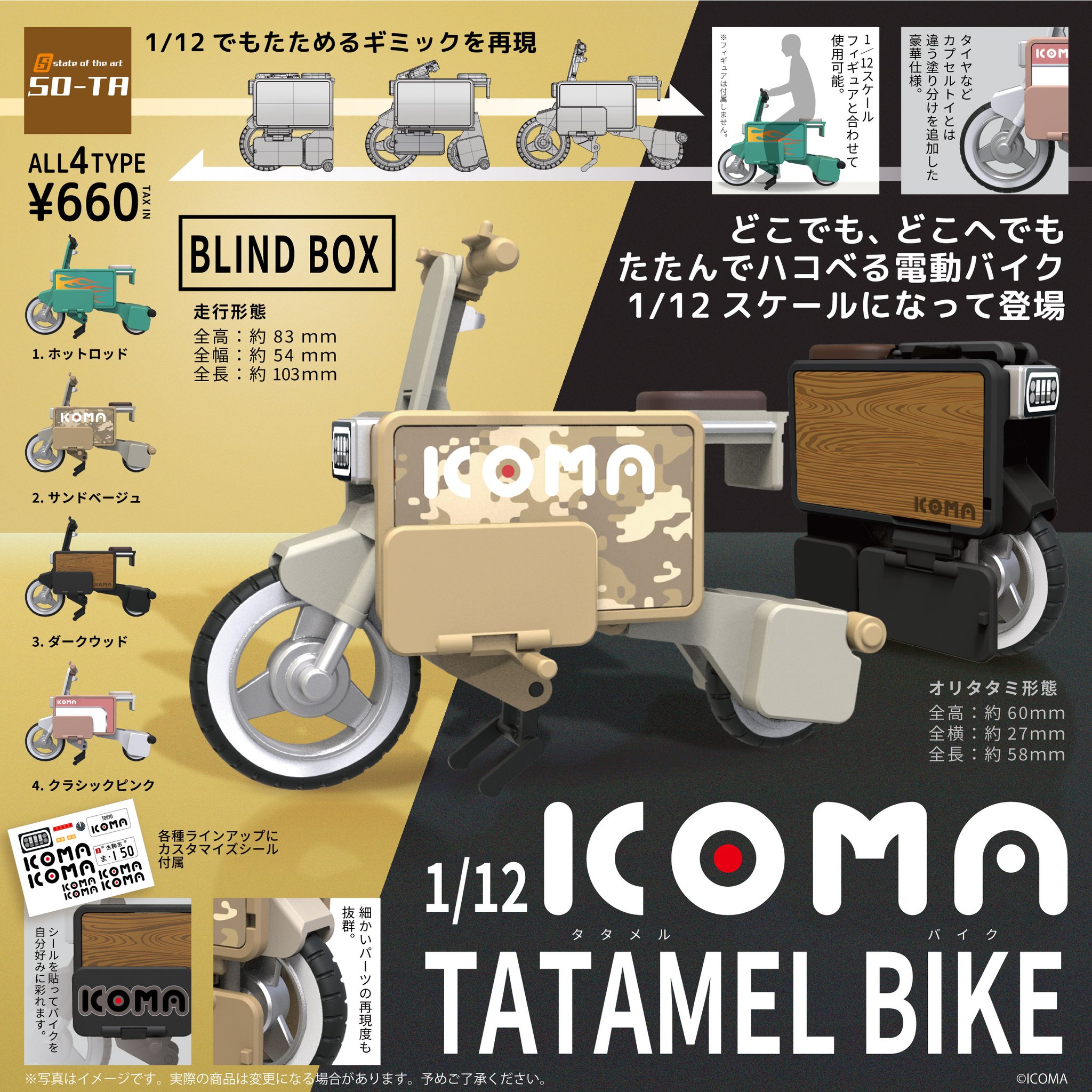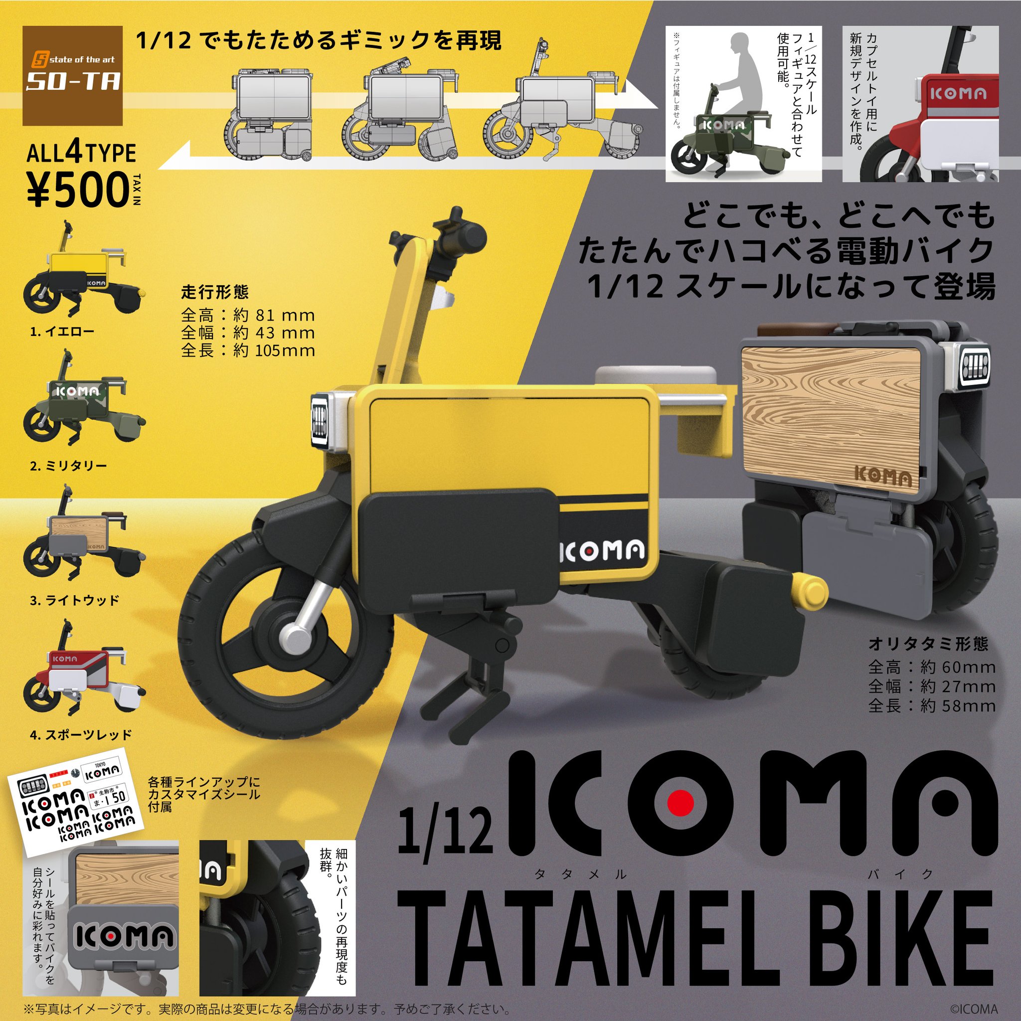【ガチャガチャ】1/12スケール「ICOMA(イコマ) TATAMEL BIKE(タタメルバイク)」発売決定【予約開始】
