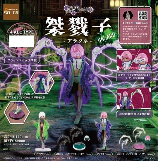 【ガチャフィギュア】SO-TA「桀戮子 -アラクネ- HAZARD」ブラインドボックス版 予約開始、毒々しいカラーとなって再登場