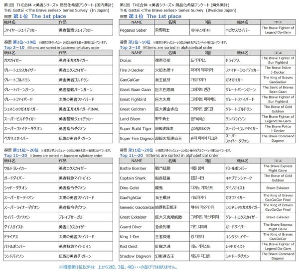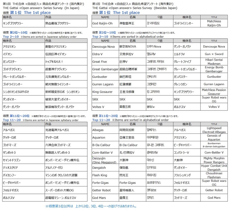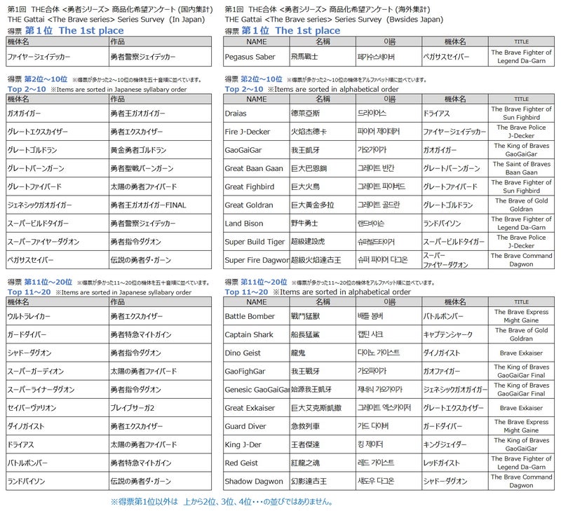 「勇者ロボ」「勇者ロボ以外自由記入」の2部門の結果が公開