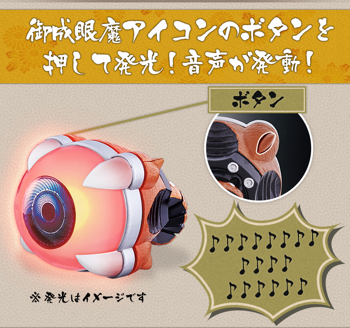番組に登場する『御成眼魔アイコン』を忠実に立体化しました。