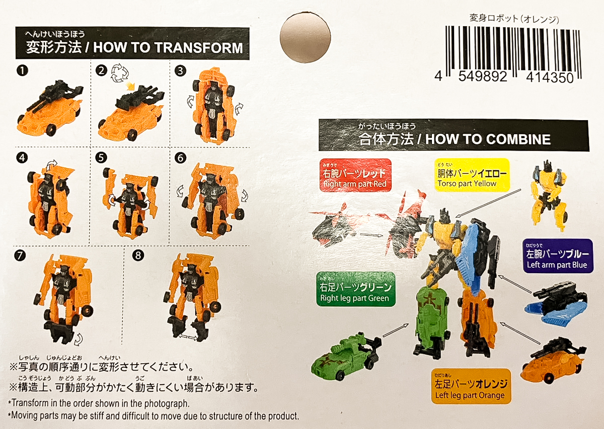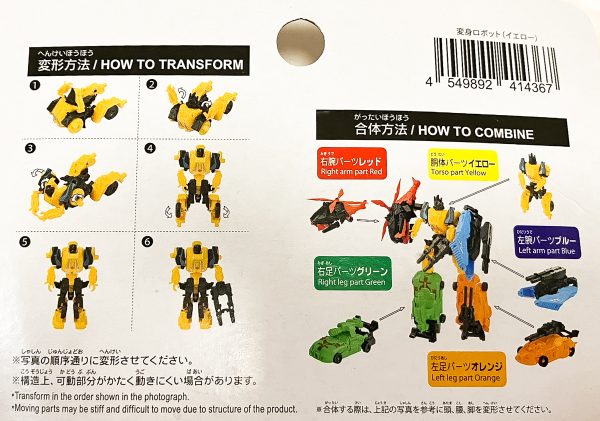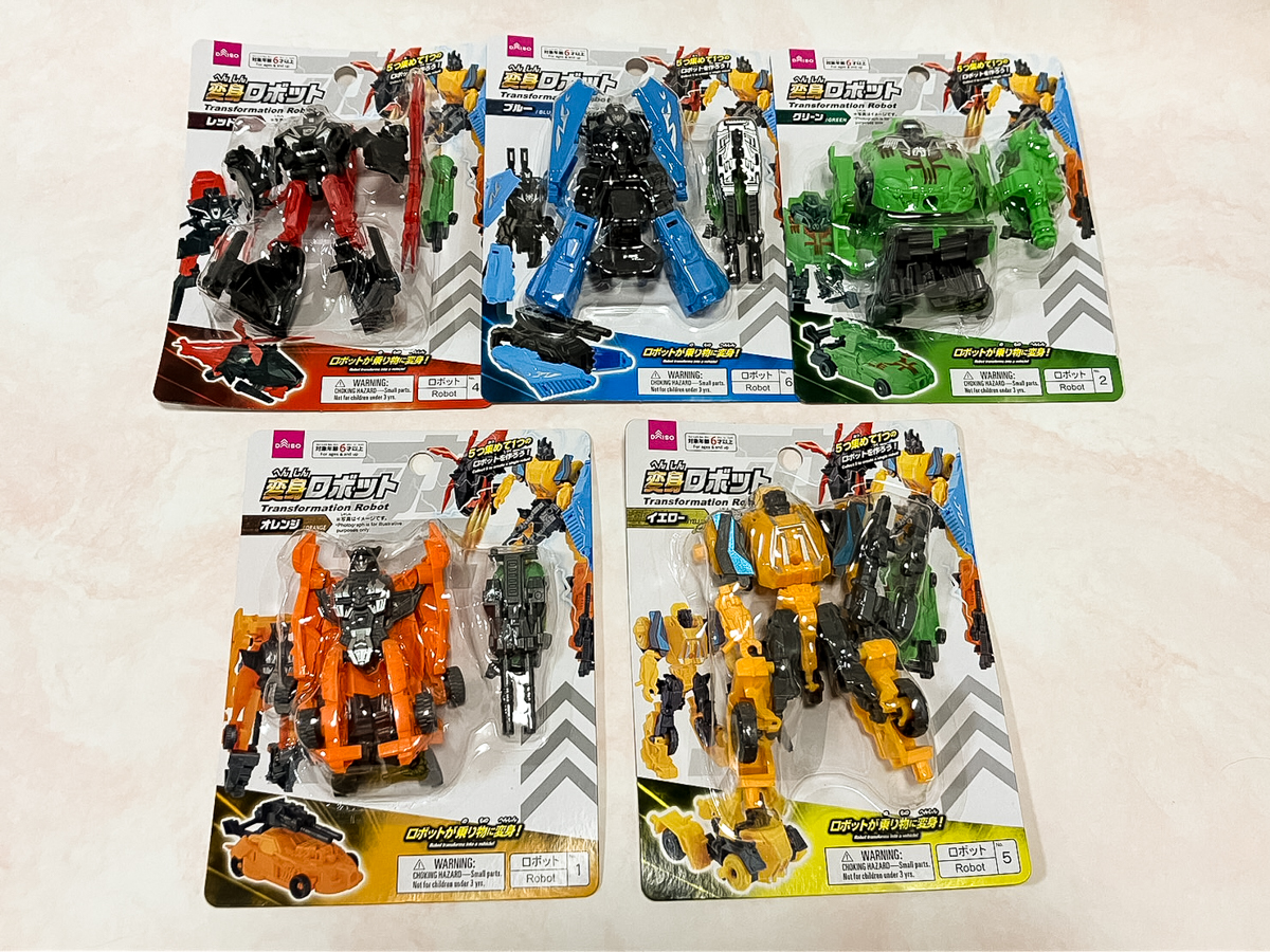 【おもちゃ】「変身ロボット(オレンジ)(イエロー)」100円ショップ『ダイソー』で発売中 2023年05月31日 22:05 ロボットおもちゃ・トレカほか100円ショップダイソー|CM() オレンジ&イエロー ■「変身ロボット(オレンジ)(イエロー)」 100円ショップ『ダイソー』で発売中 価格100円(税別) ロボットが乗り物に変身! 5つ集めて1つのロボットを作ろう! 合体方法 右腕パーツレッド 右足パーツグリーン 胴体パーツイエロー 左腕パーツブルー 左足パーツオレンジ これで5体が揃いました ■関連記事 【おもちゃ】「変形ロボット」「変身ロボット」各種 100円ショップ『ダイソー』で発売中 【おもちゃ】「変身ロボット(グリーン)」100円ショップ『ダイソー』で発売中