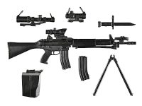 今回の1.5版は、前作[LA020]89式小銃に、薬莢受け、ドットサイトやスコープ、レーザーエイミングモジュールなどのエクストラパーツを追加。