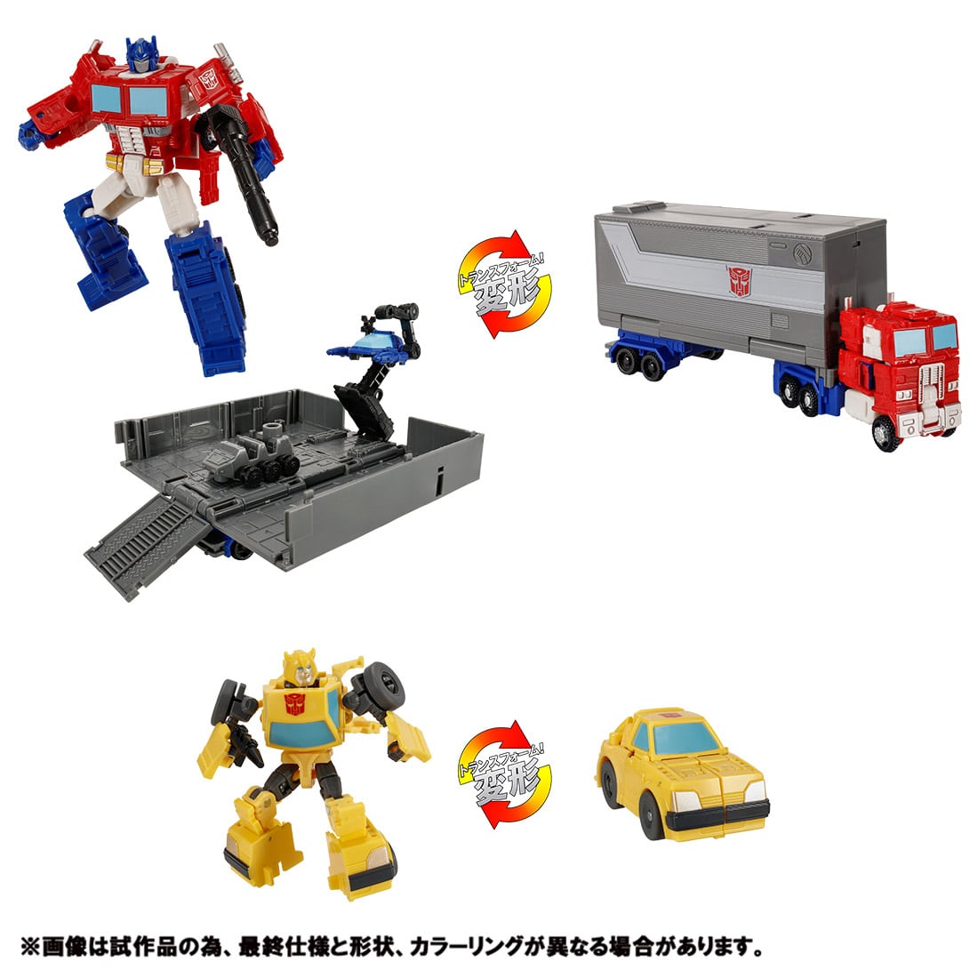 オプティマスプライムはトレーラートラック、バンブルビーはコンパクトカーに変形します。
