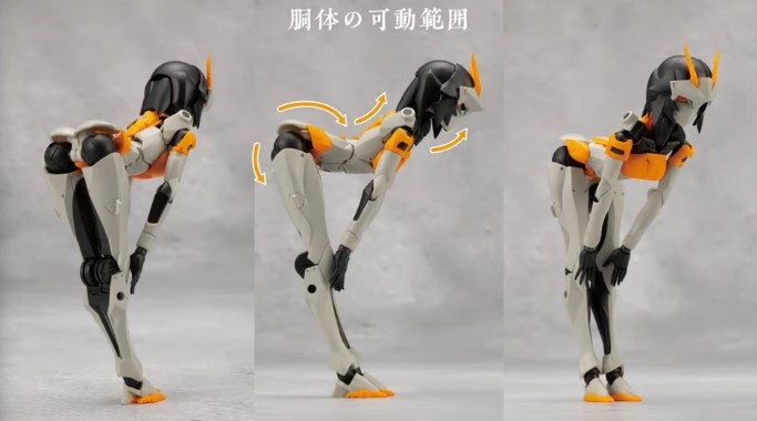 胴体部分の可動範囲も優れており「寝そべる」ポーズも自由自在。首は前後左右への可動ギミックを使って首を逸らしたポーズも可能。肘の曲がり角度も深く、頬に手を添えるといった女性らしいポージングもできますよ。