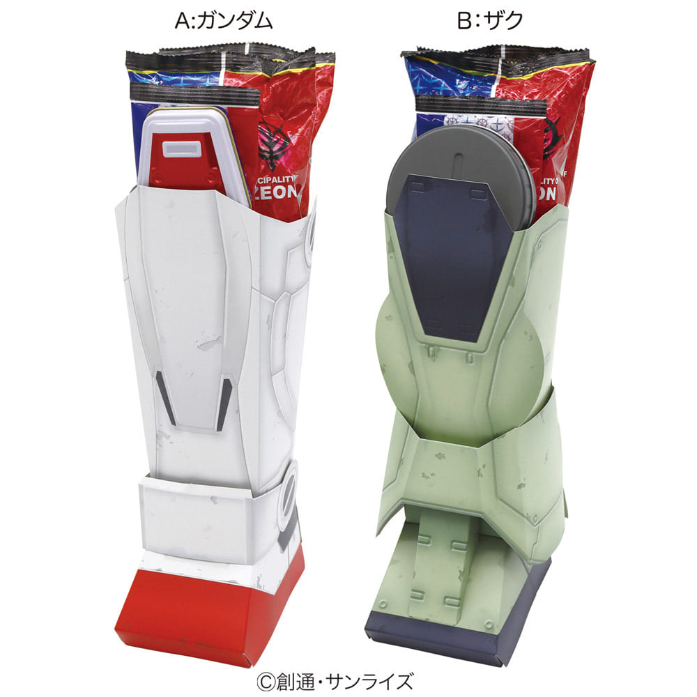 モビルスーツの足をイメージした紙製ブーツです。缶ケース付き。