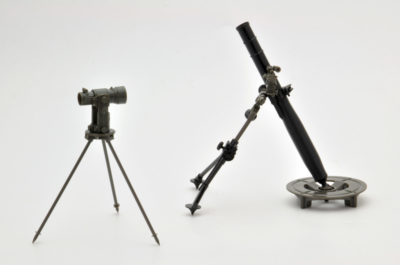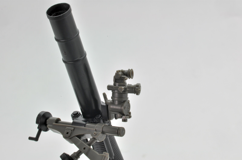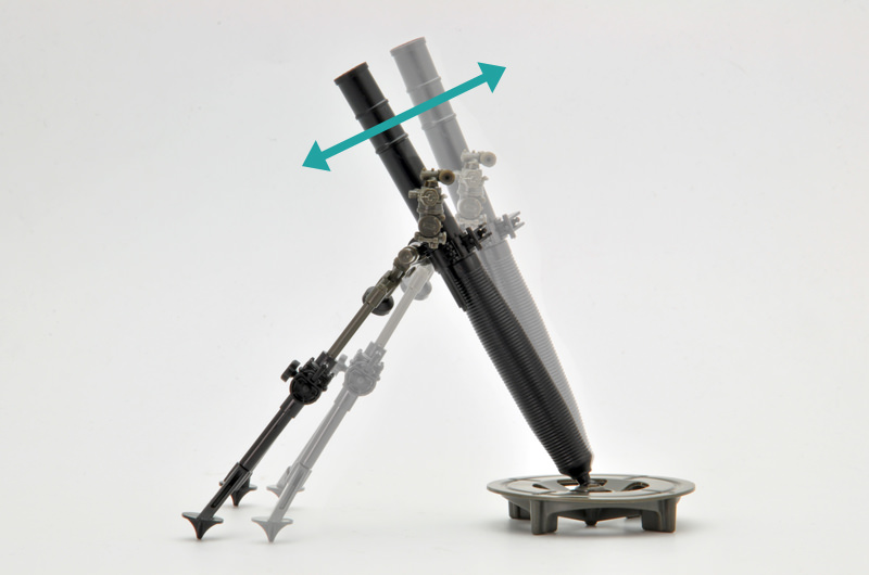 射程は100~5600m。キットには、軸可動の2脚と照準器を備えた迫撃砲本体と、