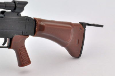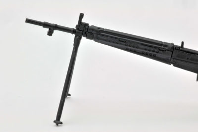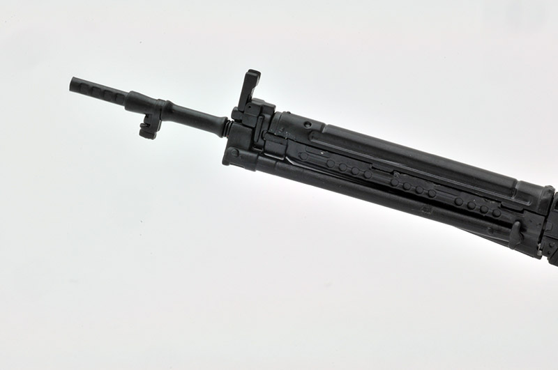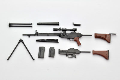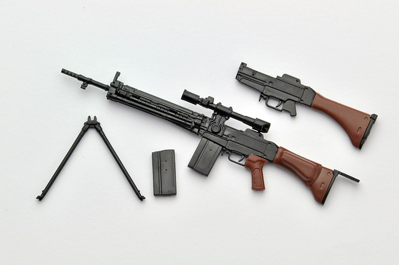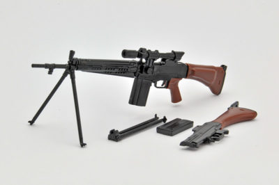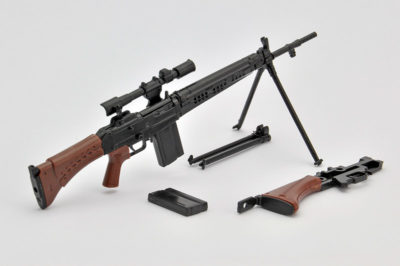 特徴的な64式用狙撃眼鏡と革製チークパッド付銃床を新規造形。開閉選択式の二脚と床尾上板、弾倉が付属。