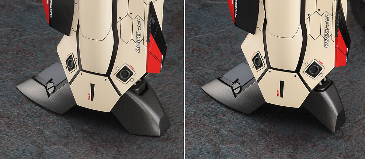 踵の形状は、バトロイド形態の設定を重視したものと、ファイター形態のベクターノズルを意識したものの2種から選択可能。